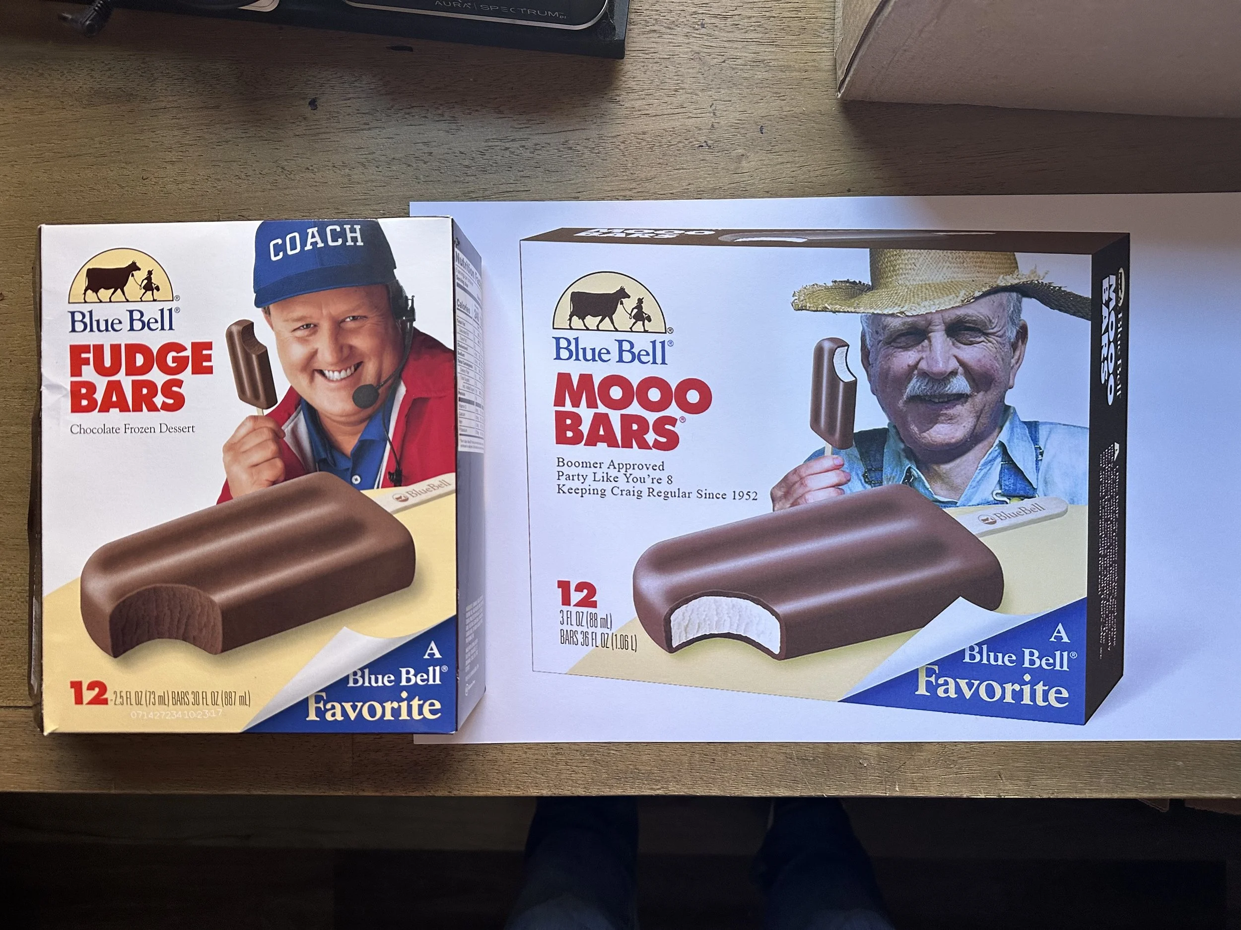 As discussed on this podcast! Adam photo shopped his Dad onto his favorite Ice Cream’s chocolate bars for his 70th birthday only to discover year’s later that Walker character actor Blue Deckert is literally on every box!
