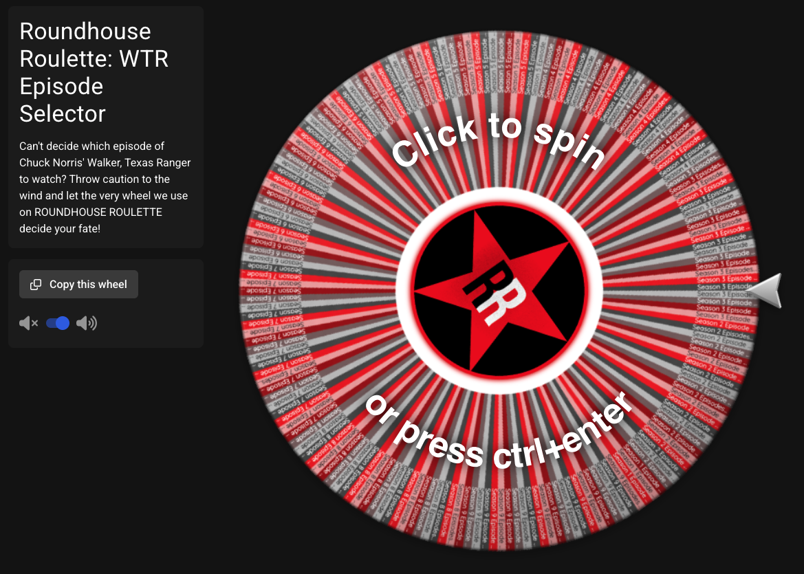 You can now spin the Roundhouse Roulette Wheel yourself on our website and randomly select one of the 200 Walker, Texas Ranger episodes. No skipping, no cheating, no mercy — just pure roulette chaos, exactly how Chuck would want it.